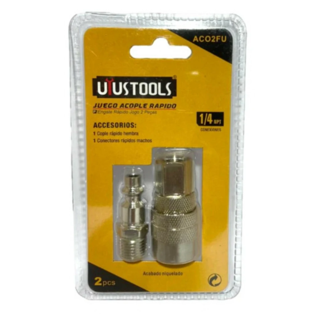 Facilita tus trabajos con el Set de 2 Acoples Rápidos. Con estos acoples, cambiar herramientas y accesorios será rápido y sin complicaciones. Fabricados con materiales de alta calidad, garantizan una conexión segura y duradera. Aumenta tu productividad con estos acoples que simplifican tus tareas. ¡No pierdas tiempo, gana eficiencia con este set imprescindible!