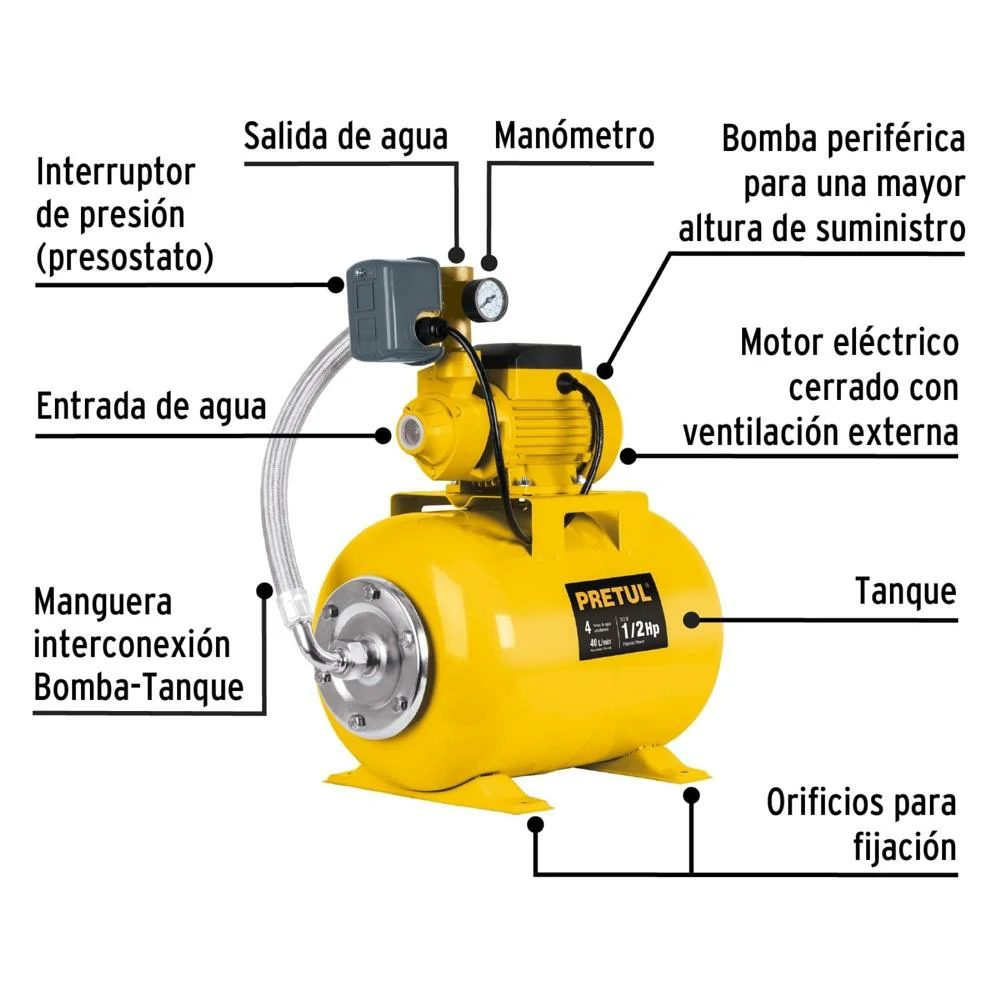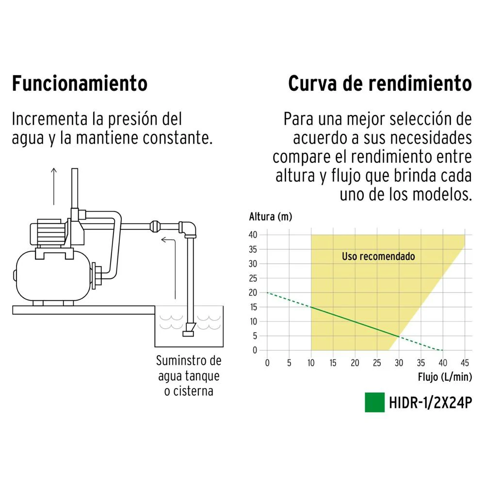 Potencia y eficiencia se combinan en nuestra Bomba Hidroneumática, diseñada para brindar un rendimiento confiable, esta bomba es ideal para abastecer de agua a sistemas de presión en hogares y pequeñas aplicaciones industriales. Su motor de 1/2 HP garantiza un flujo constante, mientras que su capacidad de 24 L asegura un almacenamiento adecuado. Con instalación sencilla y funcionamiento silencioso, esta bomba es una solución versátil para tus necesidades de agua.