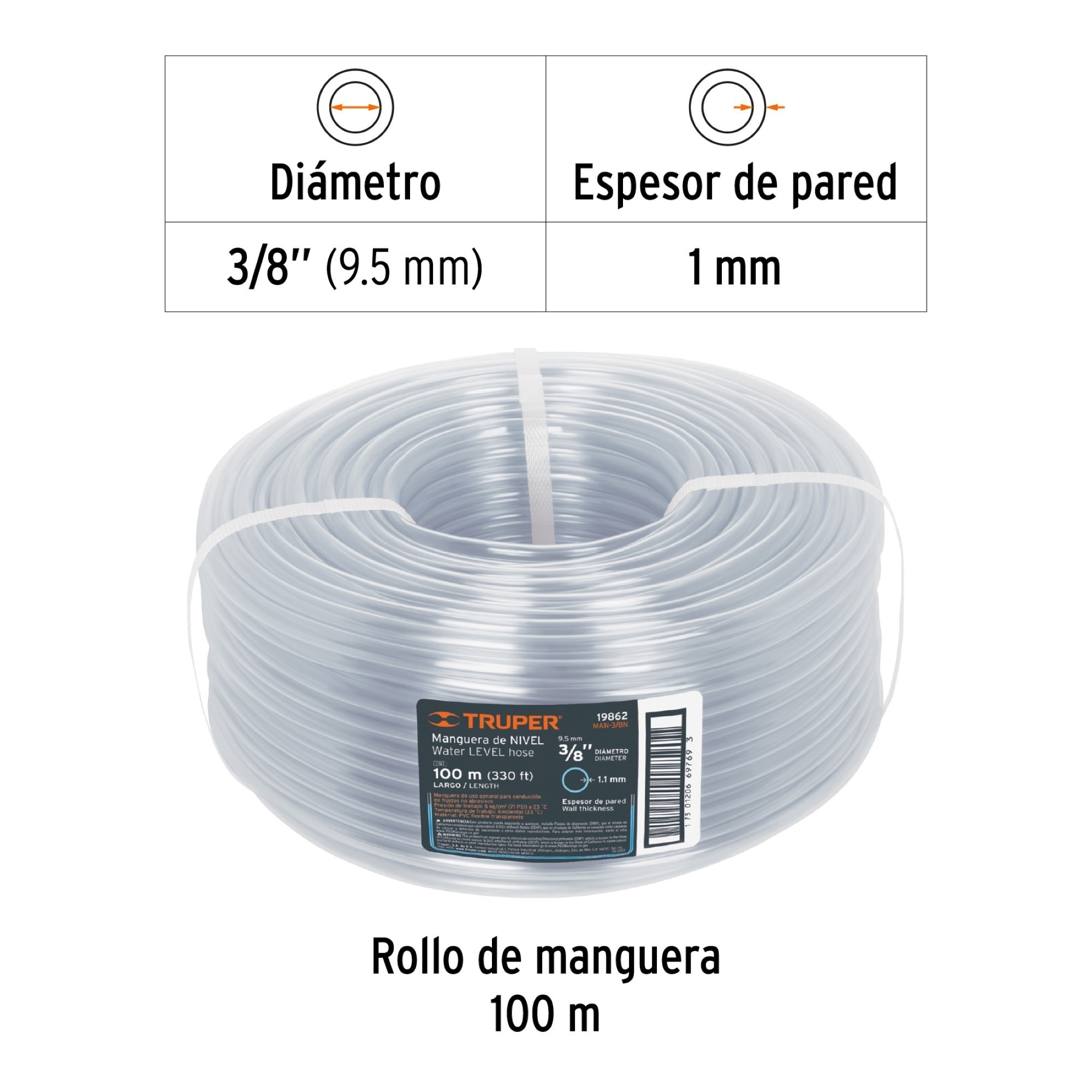 Manguera De Nivel 100 Metros Diámetro 3/8″ Espesor 1 mmDisponibilidad: 5250 disponibles