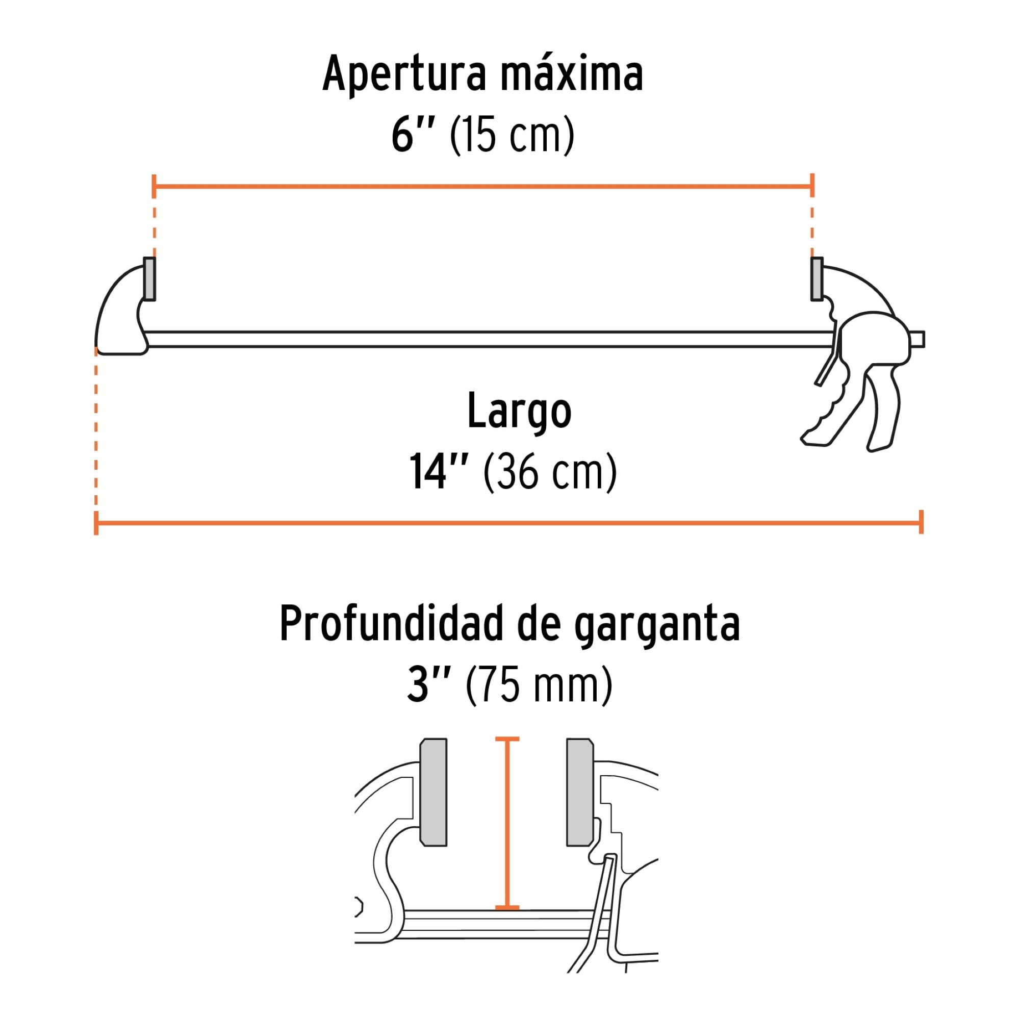 ■ Apertura máxima 6″ (15 cm)