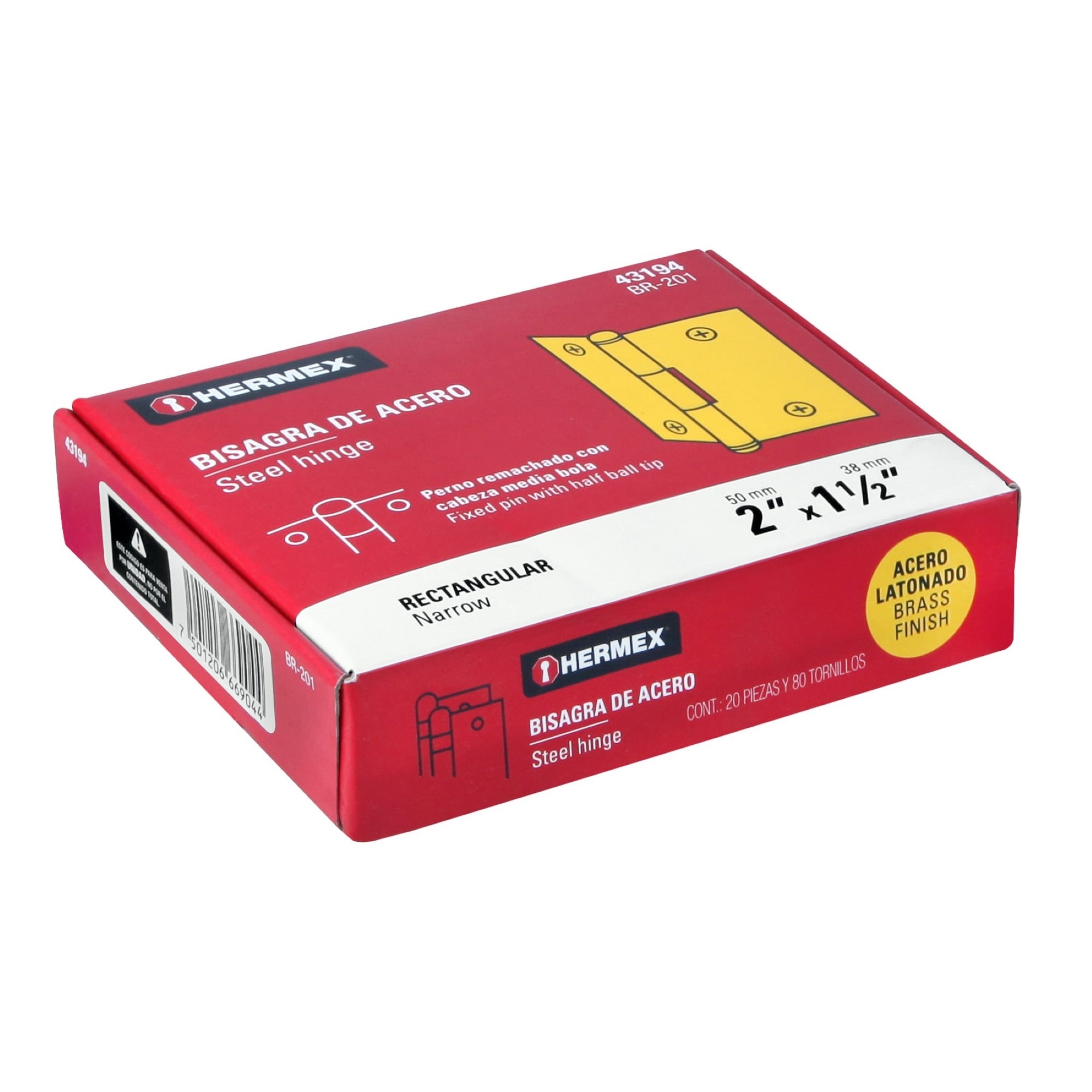 Caja De 10 Bisagras Rectangulares De 5.1 cm Acero LatonadoDisponibilidad: 1692 disponibles