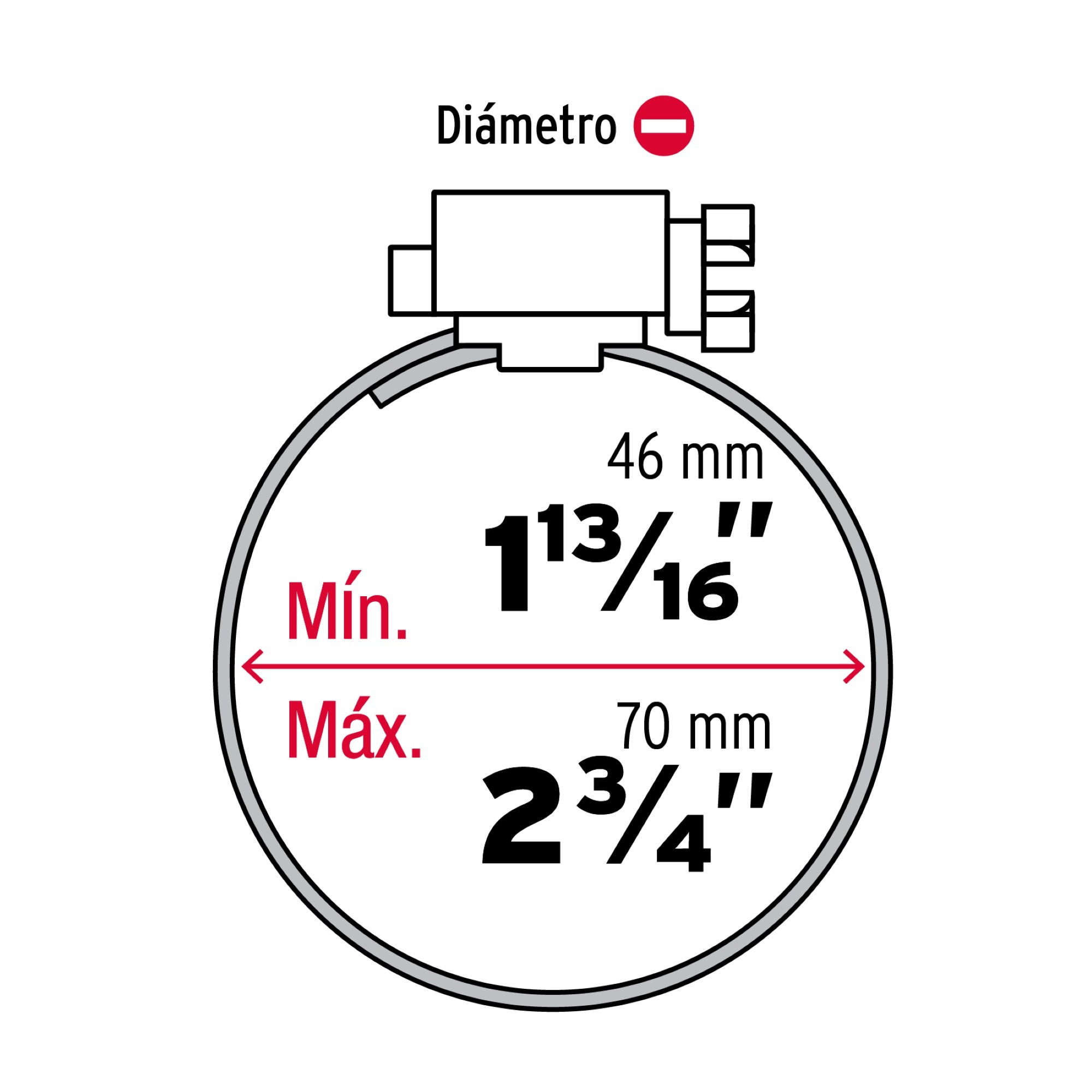 ■ Diámetro máximo: 2.3/4″ (70 mm).