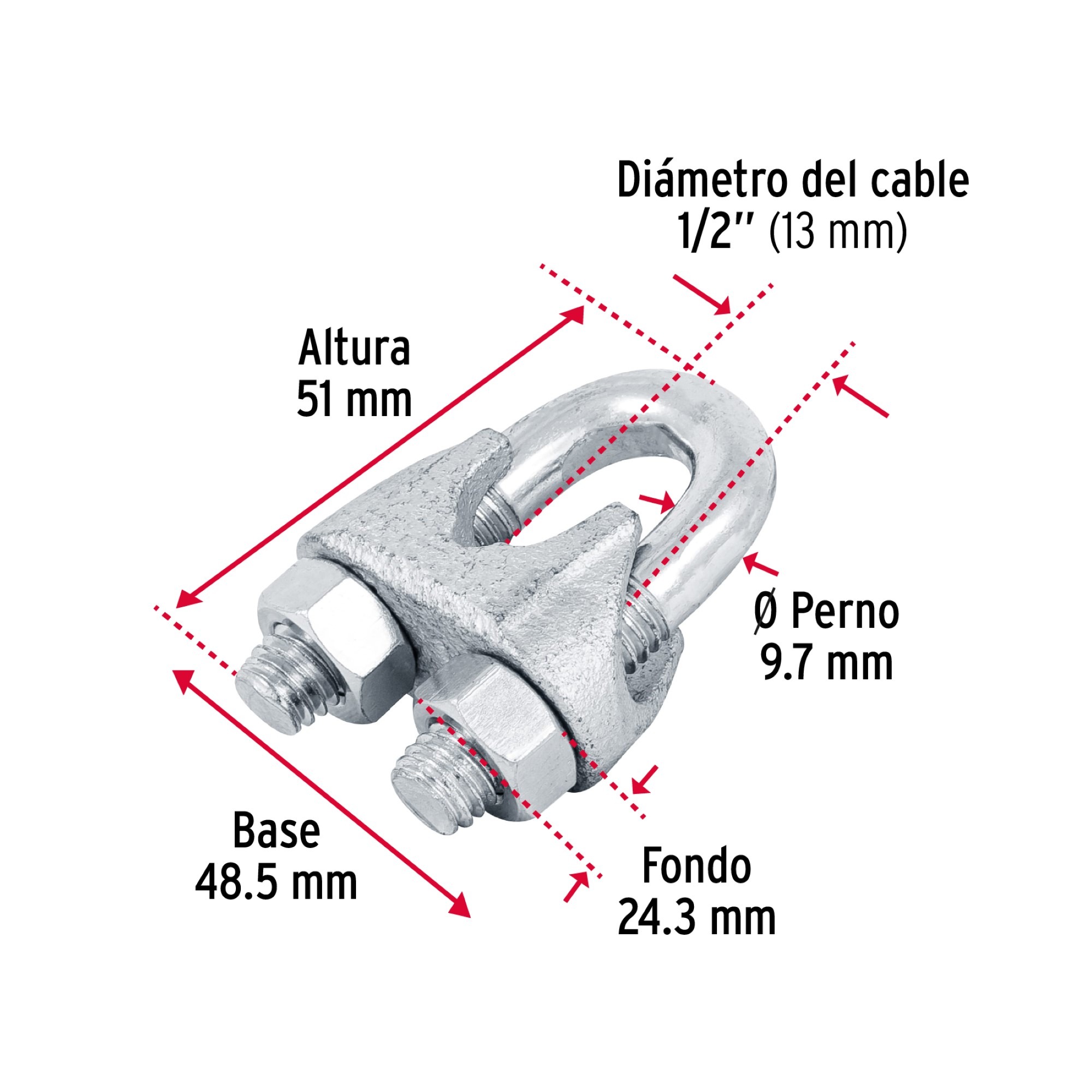 El blíster contiene dos nudos (perros) de hierro diseñados para cables de 1/2″. Estos nudos proporcionan una sujeción segura y confiable, ideal para diversas aplicaciones, desde trabajos domésticos hasta proyectos industriales. Su construcción robusta garantiza resistencia y durabilidad, asegurando un agarre firme en el cable para un rendimiento óptimo.