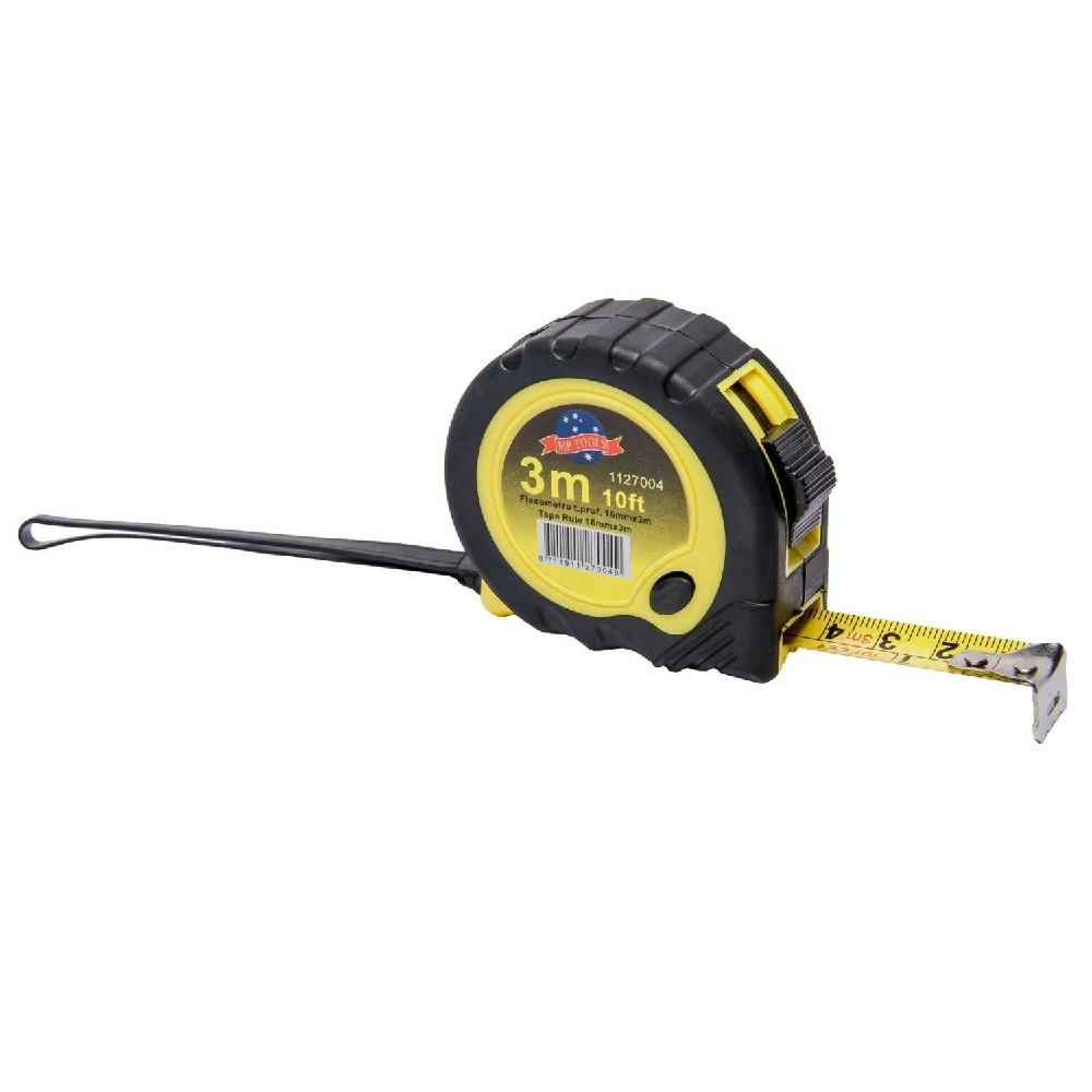 «¡Haz tus mediciones con precisión con nuestro Flexómetro 16mmx3m! Fabricado en acero de carbono #45 con cuerpo ABS y mango de caucho para durabilidad y comodidad, cuenta con carcasa, gancho y seguro para un funcionamiento confiable. Imprescindible en el sector carpintero, plomero o de la construcción para resultados exactos en cada proyecto.»
