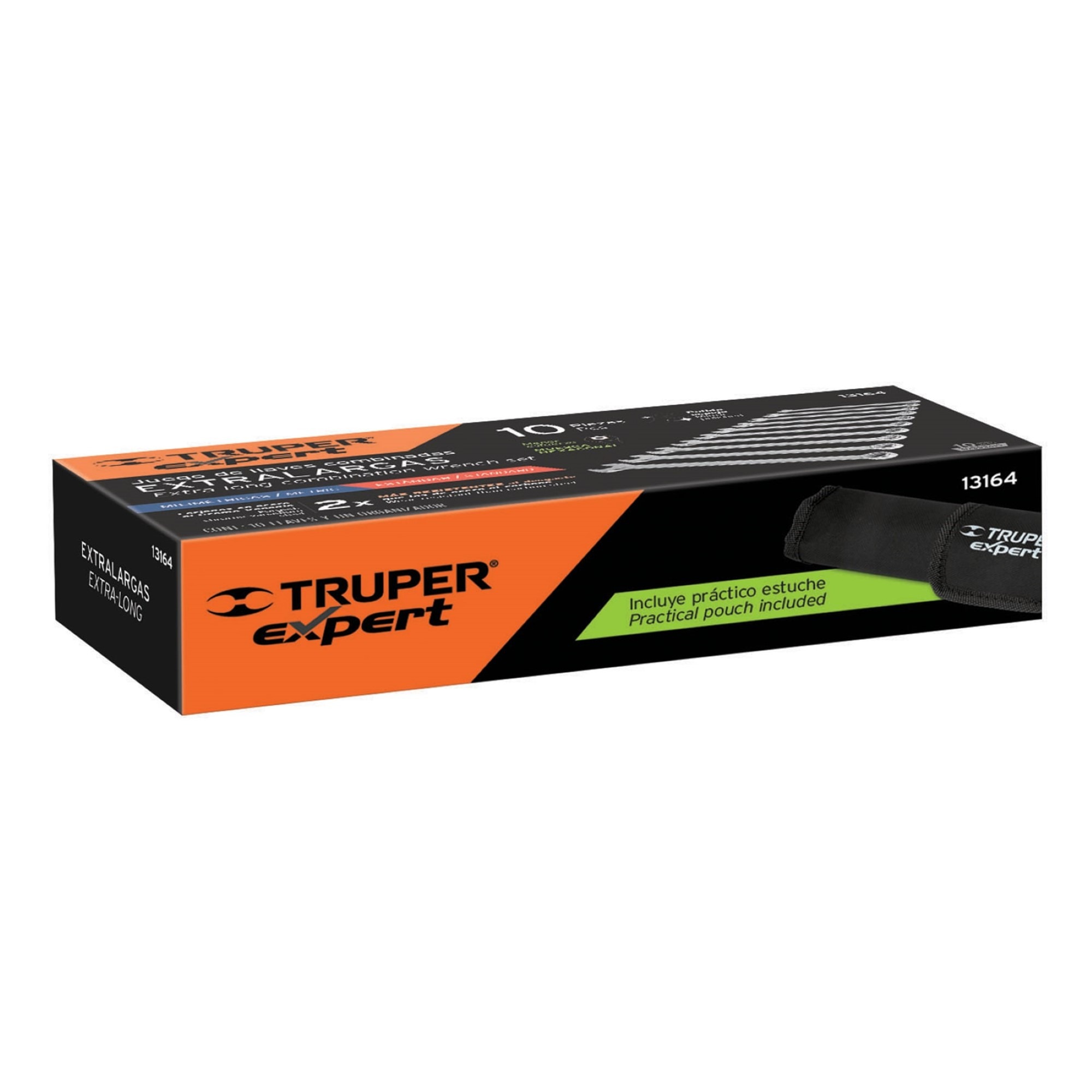 El juego de 10 llaves combinadas extralargas pulidas, estándar y métricas de la marca Expert, es una colección completa de herramientas esenciales para trabajos mecánicos. Estas llaves combinadas ofrecen versatilidad y eficiencia al combinar la funcionalidad de una llave estándar con la comodidad de una matraca, facilitando el apriete y afloje de tuercas y pernos en espacios reducidos.