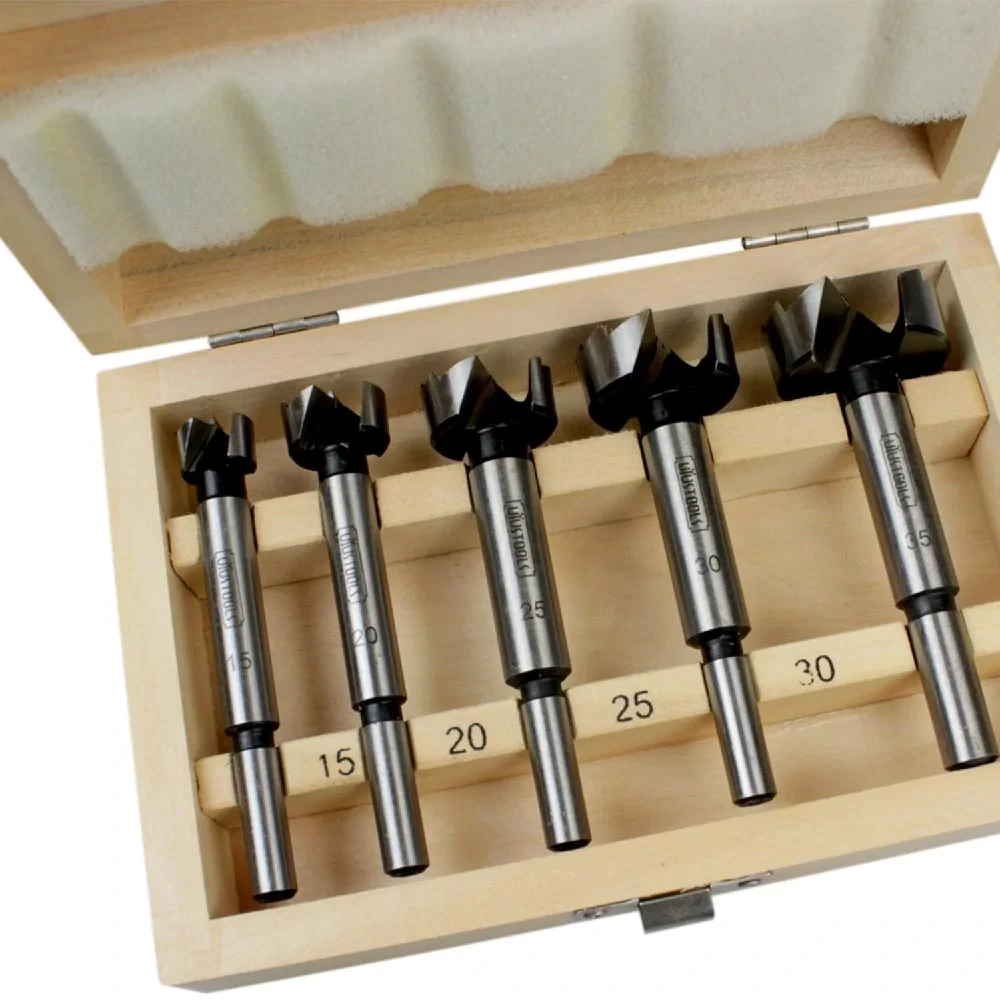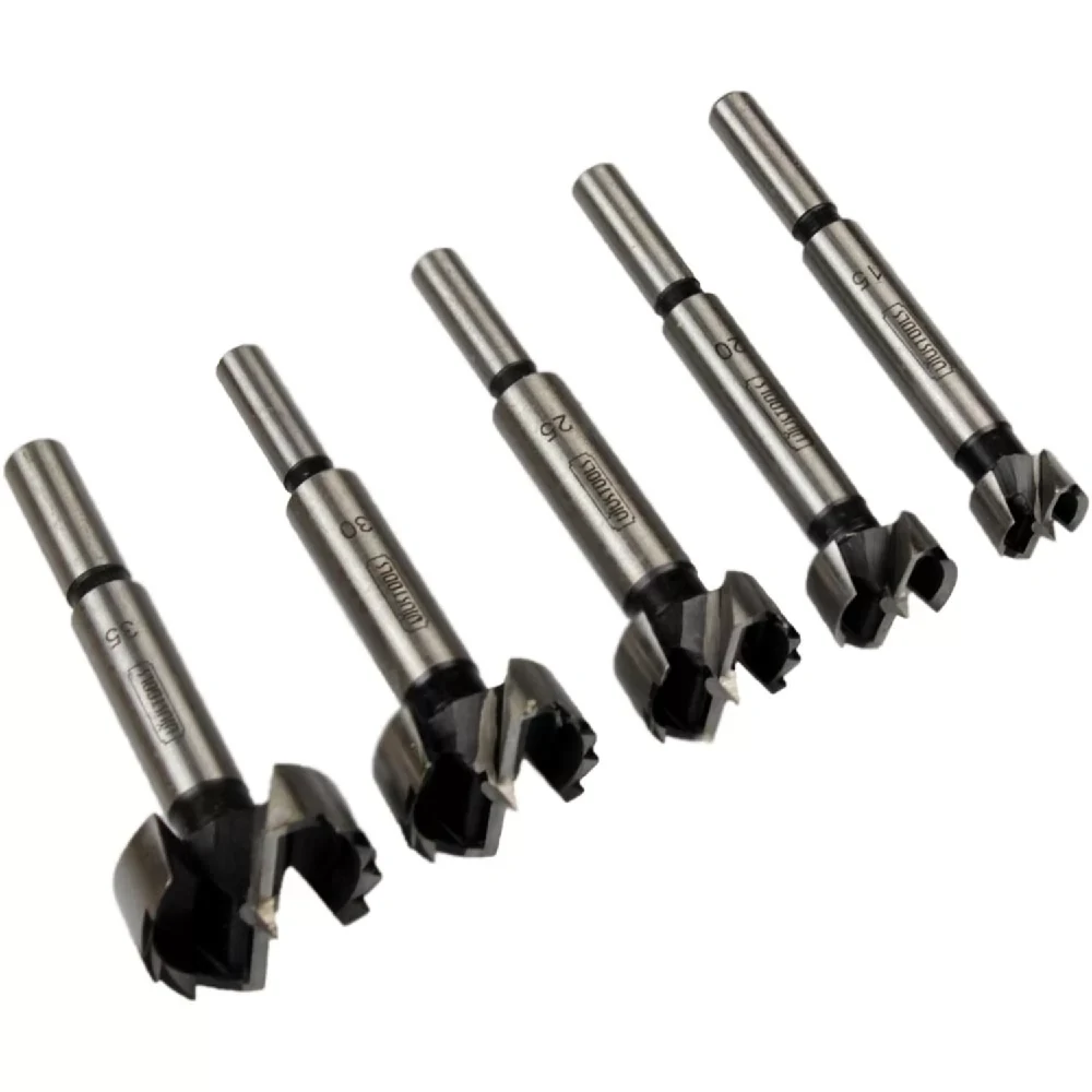 Juego de brocas para madera tipo Forstner ¡Perforación precisa y limpia en madera! Esta broca cumple con los más altos estándares de calidad de corte y acabado, evitando astillamientos en el orificio de perforación. Con dos aristas de corte principales y dos laterales, así como una punta centradora corta, esta broca de precisión es ideal para madera dura y blanda, incluyendo madera contrachapada. Fabricada en acero de alto carbono especial templado, asegura durabilidad y resistencia con una dureza mínima de filos de 50HRC.