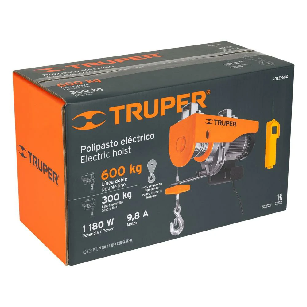 Eleva tus expectativas con el Diferencial eléctrico de 600 kg. Eficiencia y potencia se fusionan para manejar cargas con precisión. Confiabilidad comprobada para tareas exigentes. Simplifica tu trabajo y eleva la productividad con este polipasto eléctrico confiable de Truper. ¡Haz que cada elevación sea más fácil y segura!