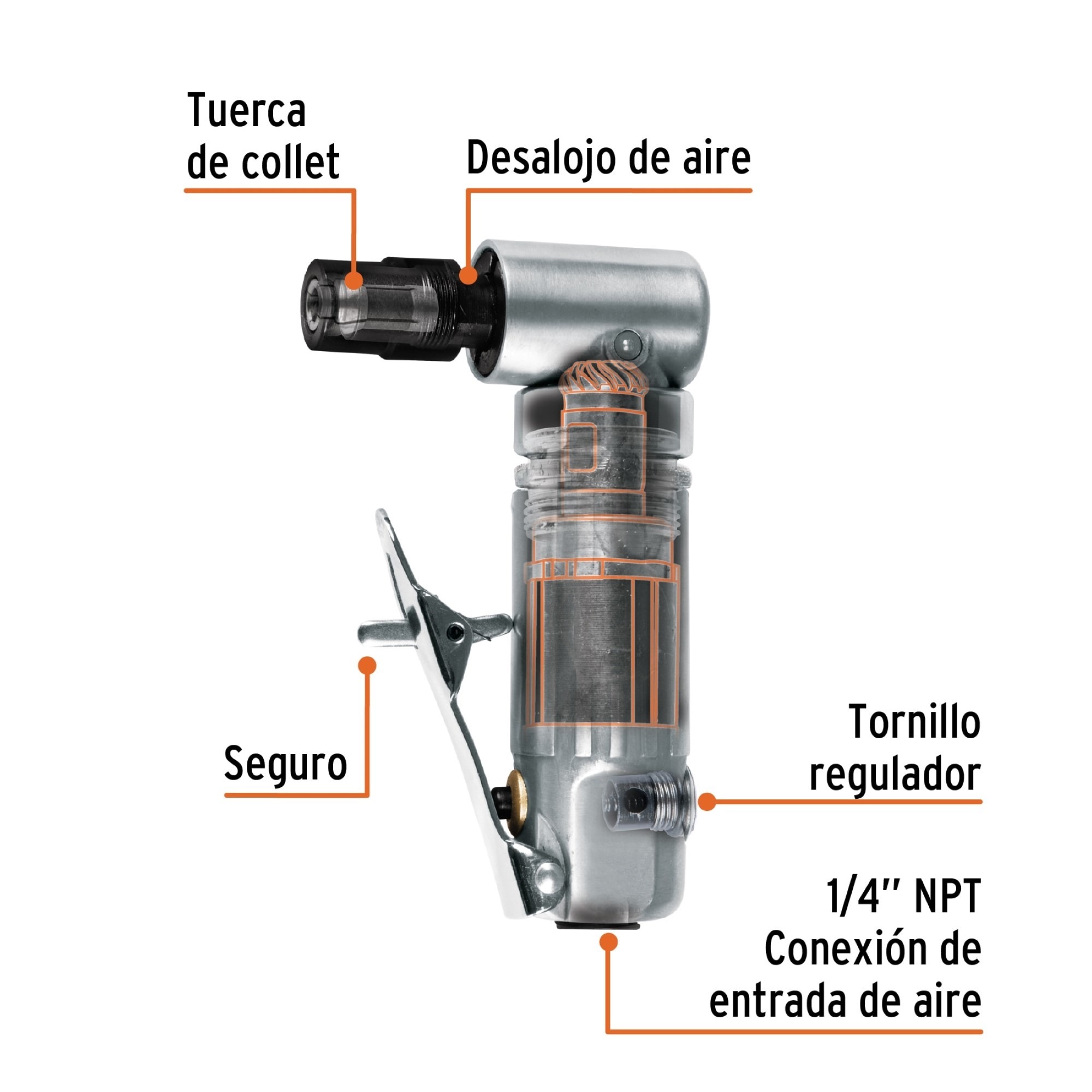 Mini Esmeril Angular De 1/4″ Neumático Cuerpo De Aluminio