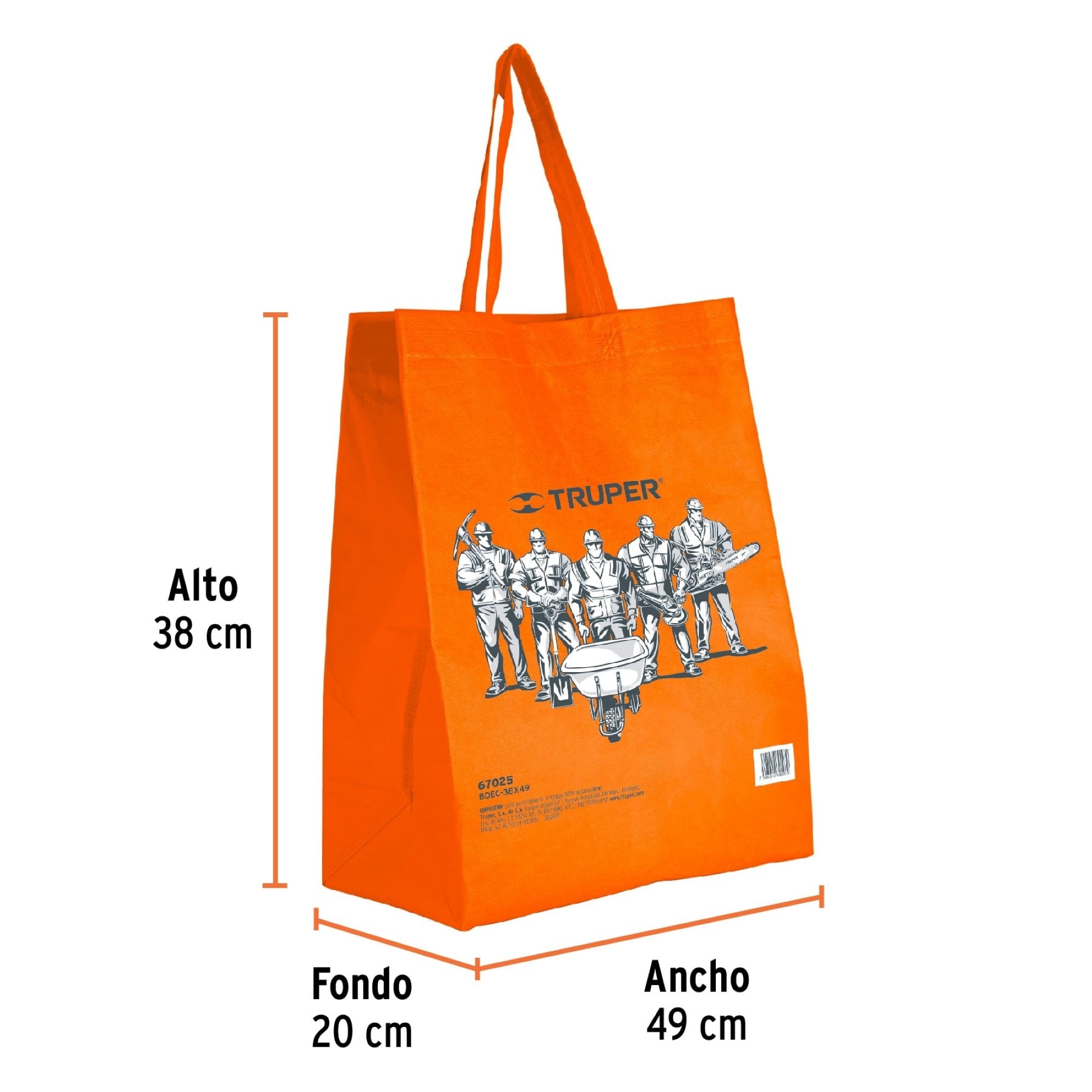 ¡Descubre la bolsa ecológica naranja de Truper! Con un tamaño de 38 x 49 cm, esta bolsa es tu compañera ideal para llevar tus compras de manera sostenible. Fabricada con materiales amigables con el medio ambiente, esta bolsa no solo es práctica, sino también consciente. Haz tu parte por el planeta mientras llevas tus cosas con estilo. ¡Obtén la tuya hoy mismo!