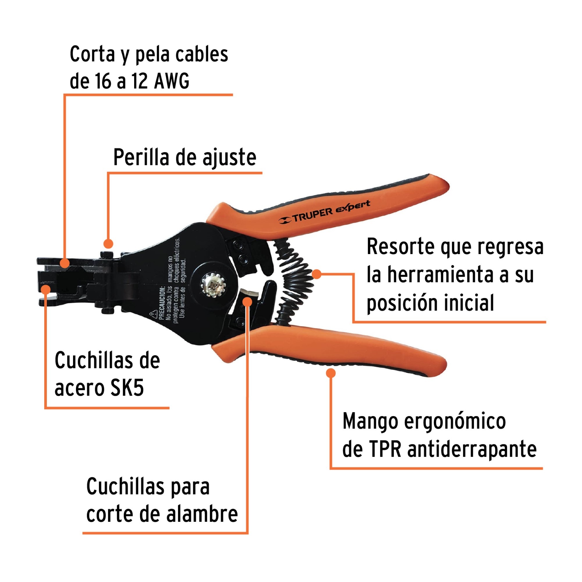 ■ Corta y pela cable calibre: De 16 AWG a 12 AWG (sólido y trenzado)