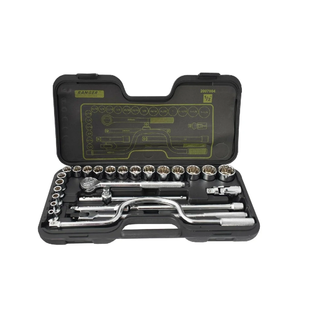 ¡Afronta cualquier desafío mecánico con las copas Ranger cuadrante! Fabricadas con acero al cromo-vanadio 50BV30 y acabado cromado, estas herramientas son sinónimo de resistencia y durabilidad. Con su diseño único, se ajustan perfectamente a la cabeza del tornillo, protegiendo tanto la herramienta como las piezas roscadas. Además, su versatilidad permite acoplar extensiones, alargadores, articulaciones y más. ¡Prepárate para trabajar con precisión y confianza con este completo set, que incluye estuche y accesorios!