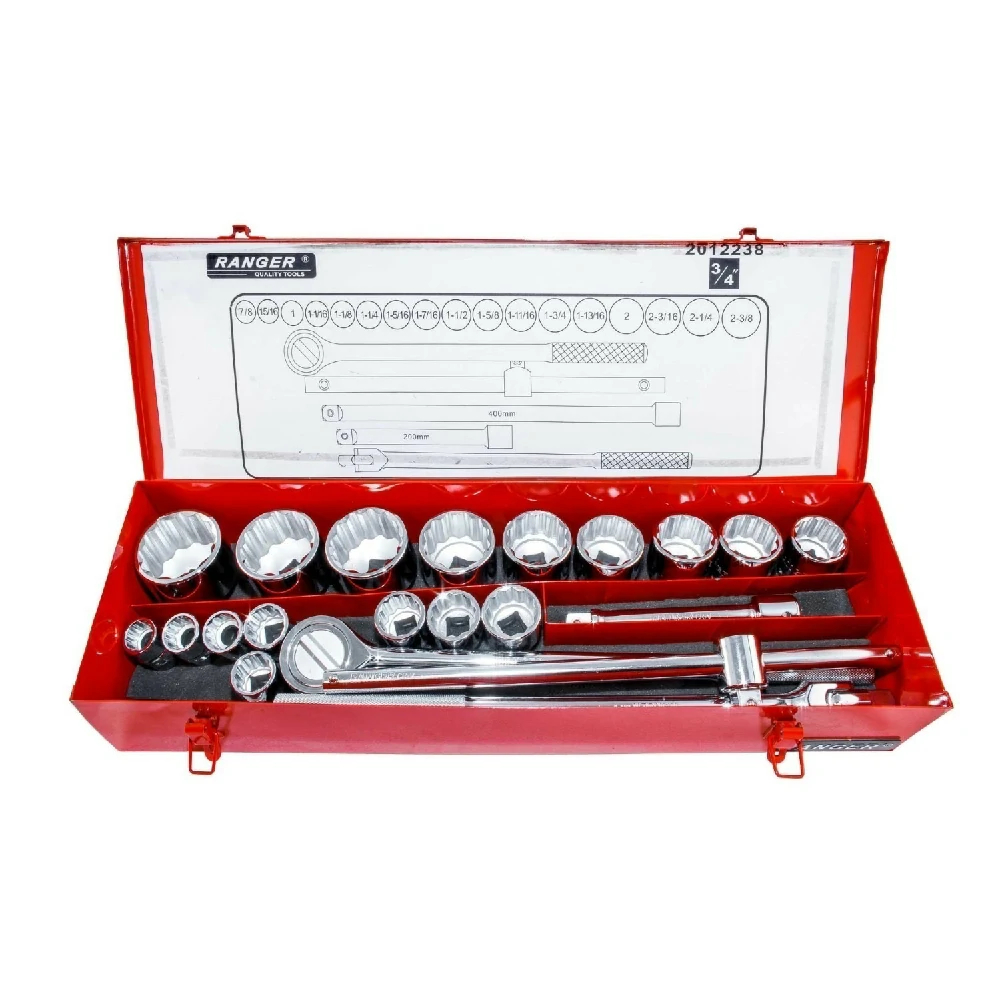 ¡Eleva tus estándares con las copas largas cromo vanadio Ranger cuadrante 3/4 – 12 puntas! Construidas con acero al cromo-vanadio 6140 y un impecable acabado cromado, estas herramientas fusionan durabilidad y elegancia. Con dimensiones de 7/8a2-3/8” a 22a50mm, son imprescindibles en trabajos industriales, de mecánica general o automotriz. Su diseño permite manipular tuercas y tornillos con un torque superior sin causar deformaciones. ¡Aumenta tu eficiencia y precisión con Ranger!