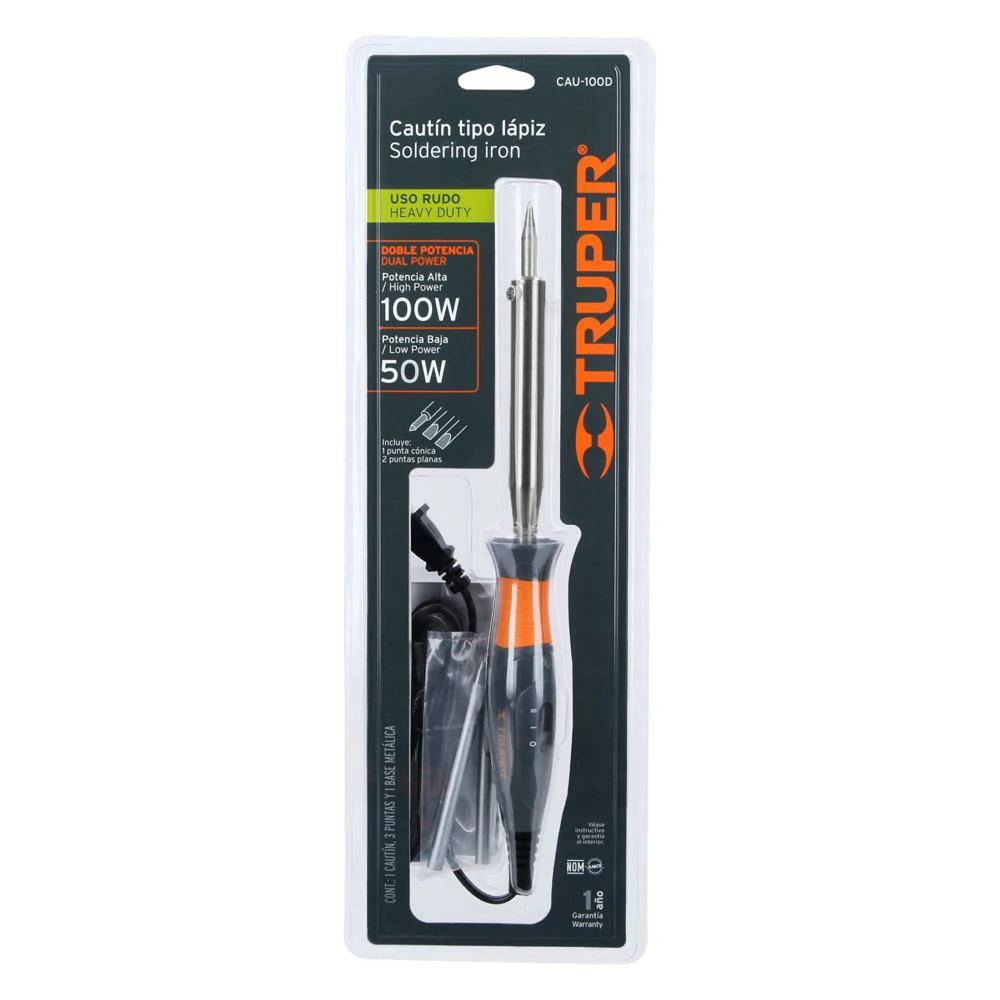 El cautín de 100W tipo lápiz con 2 temperaturas para uso rudo es una herramienta versátil y potente diseñada para satisfacer las necesidades de soldadura en una variedad de proyectos. Con dos ajustes de temperatura, ofrece flexibilidad para trabajar en diferentes tipos de materiales. Su diseño robusto lo hace ideal para aplicaciones de uso rudo, proporcionando un calor rápido y constante para soldaduras eficientes y duraderas.
